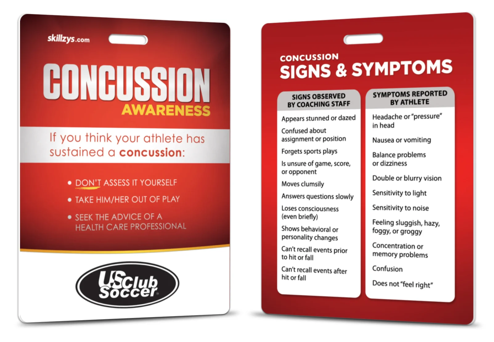 With this purchase, we'll provide free 3"x4" event credentials for your tournament staff, or free 3"x4" Concussion Awareness Tags™ for you to use as coaches' gifts.